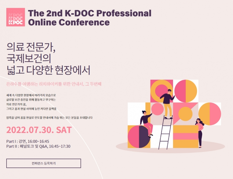 케이닥은 2022년 7월 30일 4시에 두 번째 글로벌 의료 컨퍼런스를 온라인으로 개최한다고 공지를 통해 알렸습니다. 이번 컨퍼런스는 글로벌 보건 증진과 의료 전문가의 국제적 활동과 연구를 꿈꾸는 이들을 위한 안내서를 제공하는 목적으로 마련되었습니다.